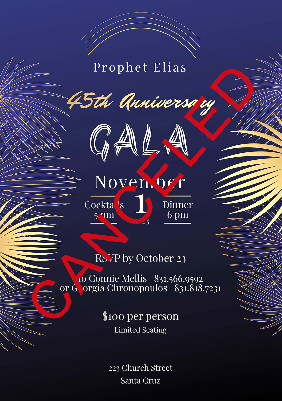 Due to unforeseen circumstances, the Prophet Elias 45th Anniversary Dinner scheduled for November 1 has been canceled. Follow our website for future events.