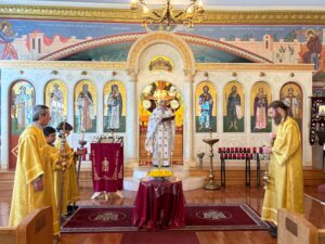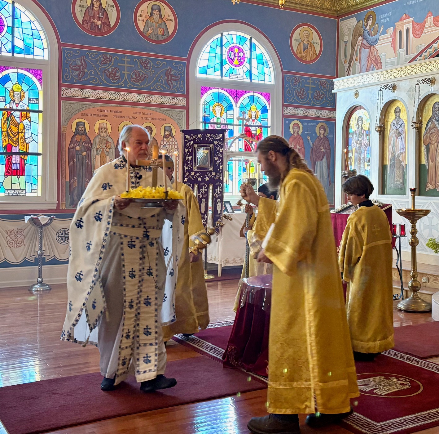 On Sunday, March 15, 2026, Father Angelo Pappas celebrated the Sunday of the Holy Cross at Prophet Elias. Many thanks to all the volunteers who adorn our icons during these Lenten days. Today, Philoptochos member Joanna Stebbins and Presvytera Mary arranged the tray for Father Angelo to carry throughout the church. Everyone in the congregation was given a blessed daffodil at the end of the Divine Liturgy. Amin!