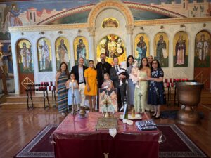 On Saturday, June 28, 2025, Father Milutin officiated the christening of Robert Dimitris Coburn. Irini and Eleni Pateras and Mariella Hadjipateras were godmothers. Also, in attendance were parents Brian and Calliopi Coburn, Yiayia Anna Petroutsas and Great Yiayia Eleni Petroutsas. Many blessings to all. Amin!